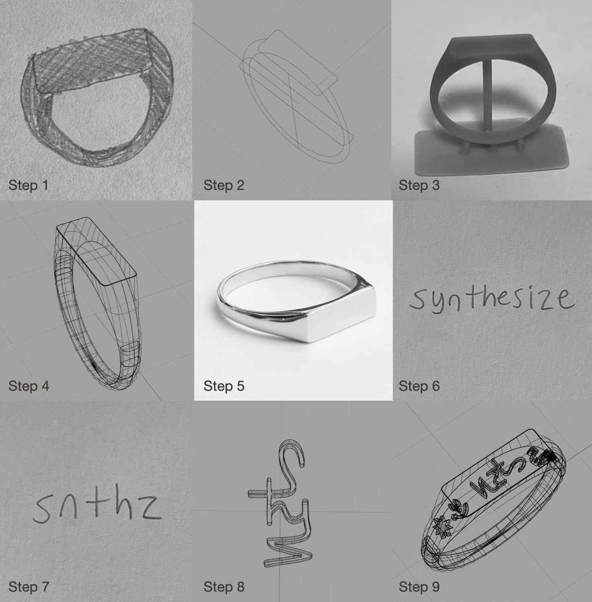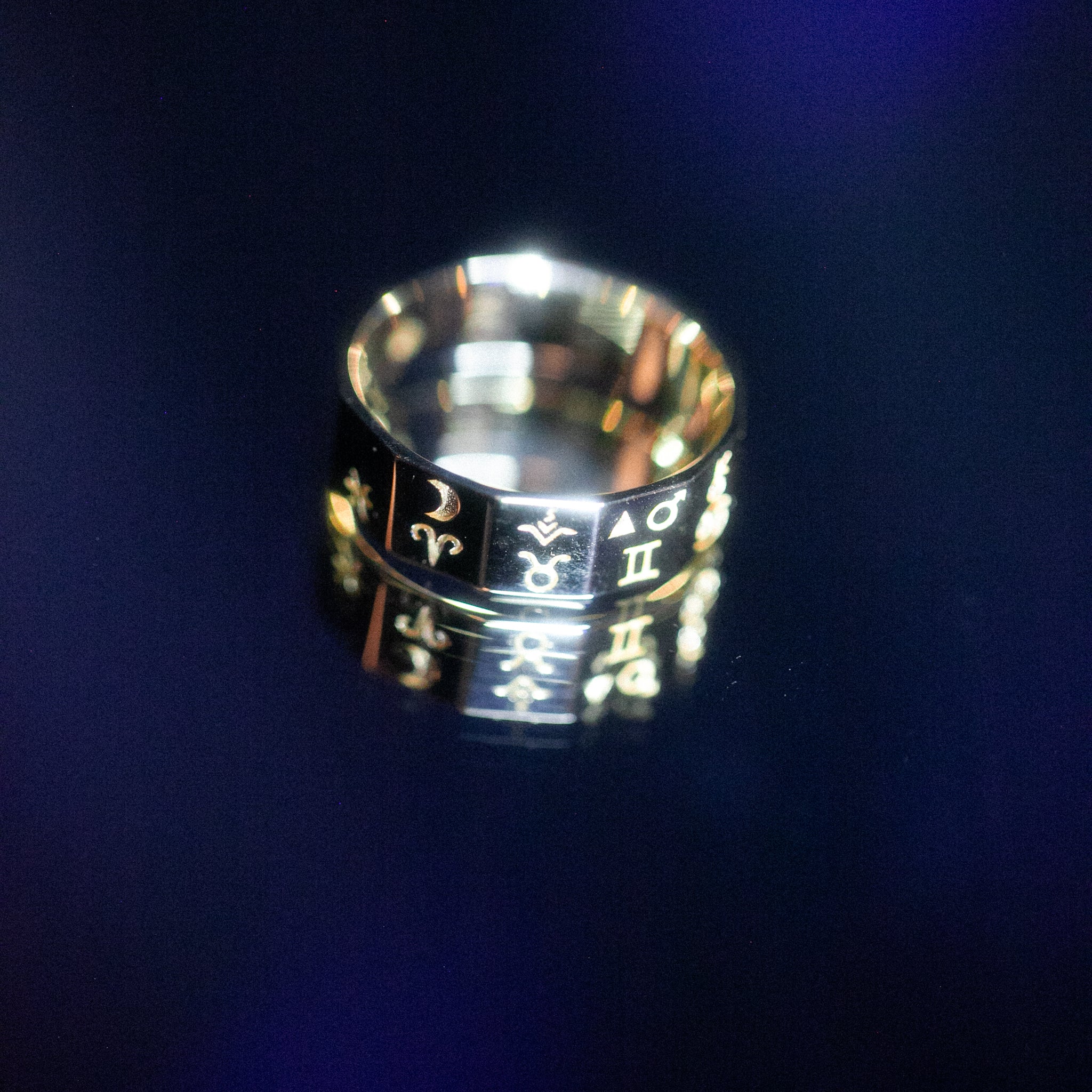 During this time we are conceptualizing, drawing, converting into 3D, printing tests and iterating the shape, casting, wearing, and iterating again, and testing versions with sigils and astrological inscriptions.