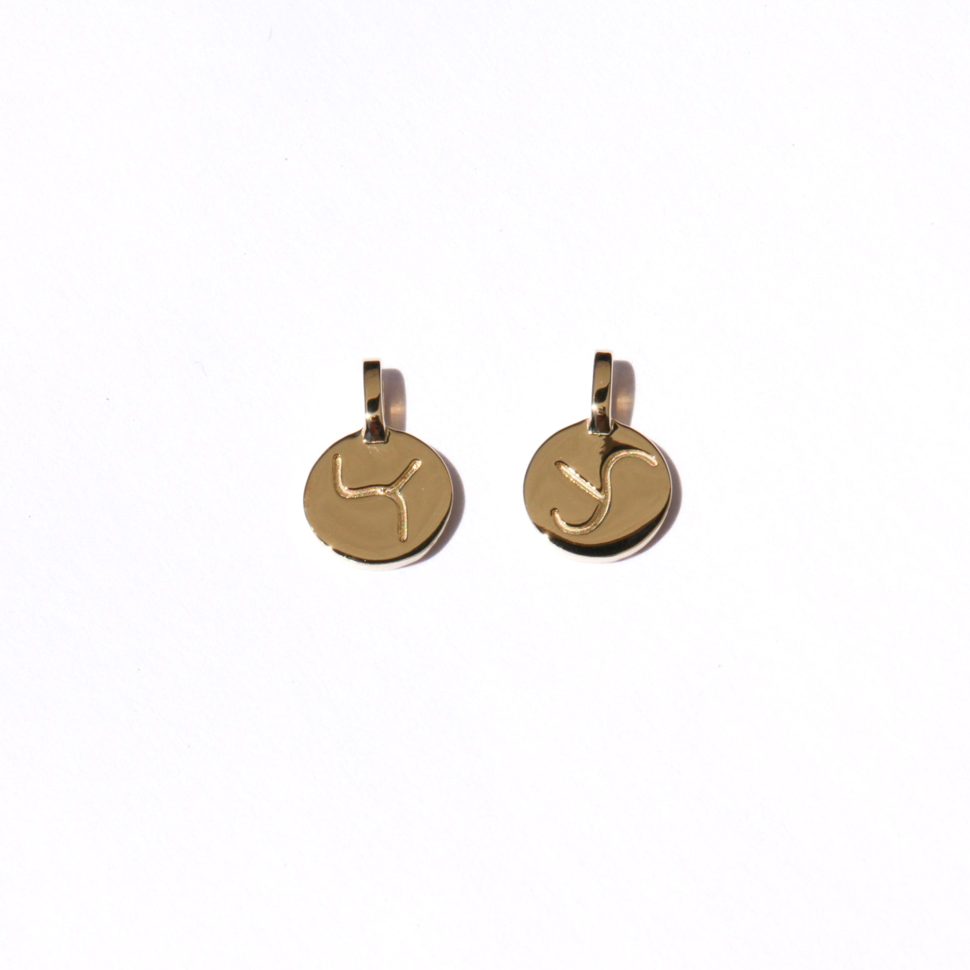 Sold as a pair! One for you and one for your other half. Bind yourself to your person by wearing sigils of each other's names in this sophisticated take on the classic BFF necklace. Bespoke sigils will be created for each of your names, for your own timeless connection to each other. Chain is not included.