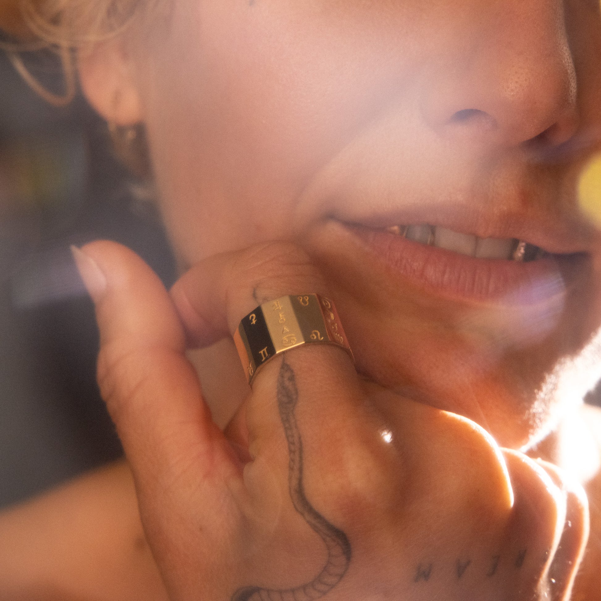 ⊹ By working with strictly solid 14k gold, we create quality pieces that last many lifetimes. We hope each Natal Chart Ring has a wide-reaching effect across time and family lineages. Choose to make your ring in Fairmined gold here.