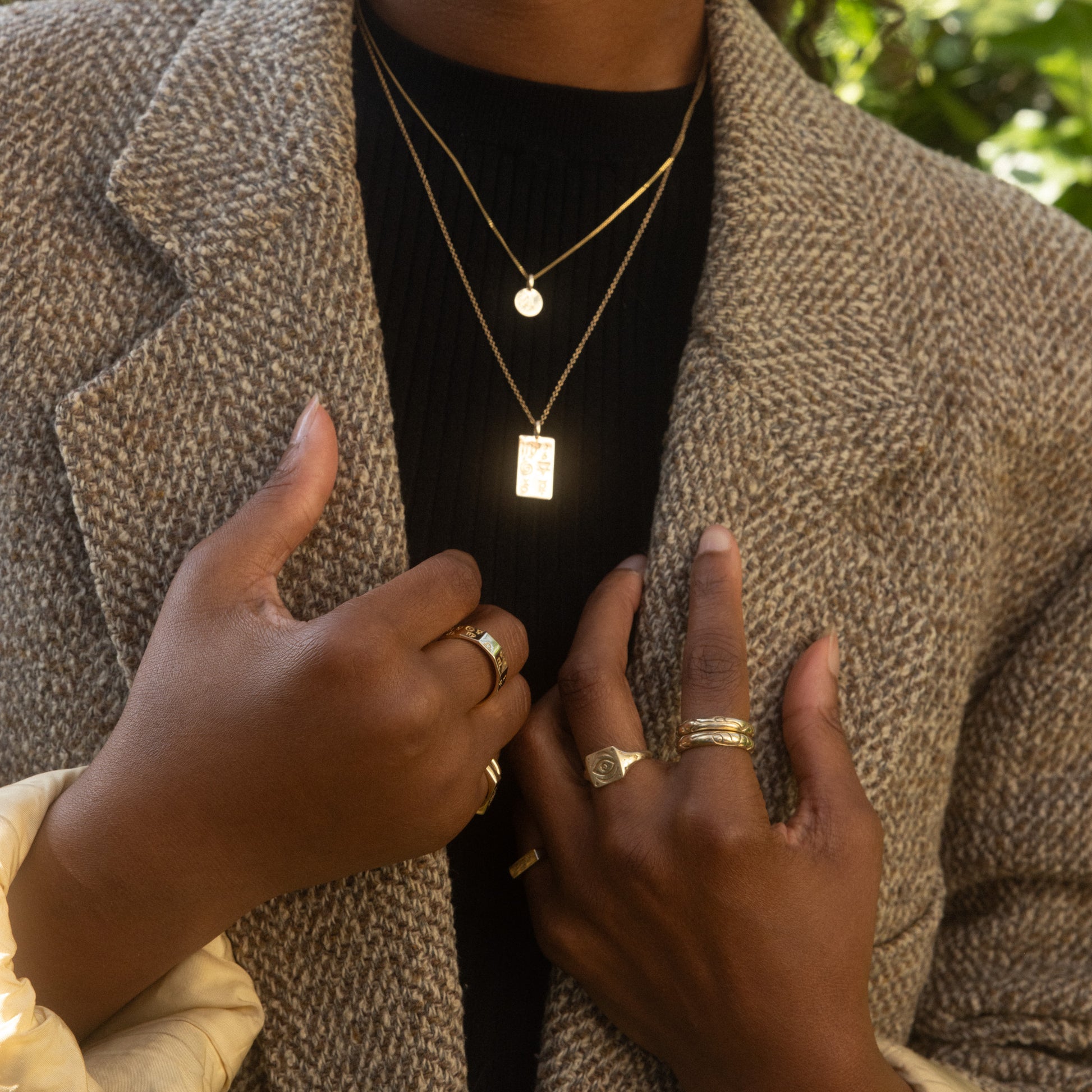 ⊹ Solid gold will never stain your skin and is unlikely to tarnish, though it is a soft metal and will scratch with wear. To us, scratches show the history of a well-loved piece, but if you want to preserve your piece be mindful of when and where you wear it.