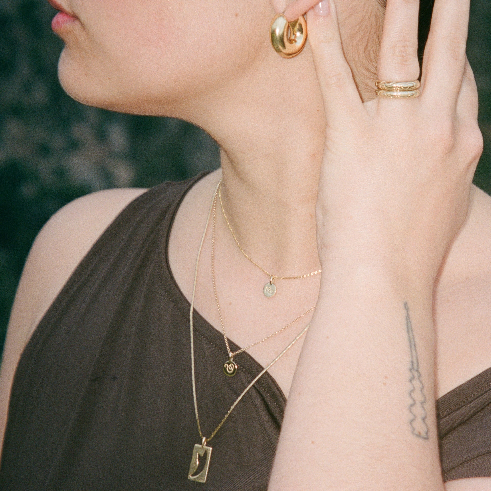 ⊹ Solid gold will never stain your skin and is unlikely to tarnish, though it is a soft metal and will scratch with wear. To us, scratches show the history of a well-loved piece, but if you want to preserve your piece be mindful of when and where you wear it.