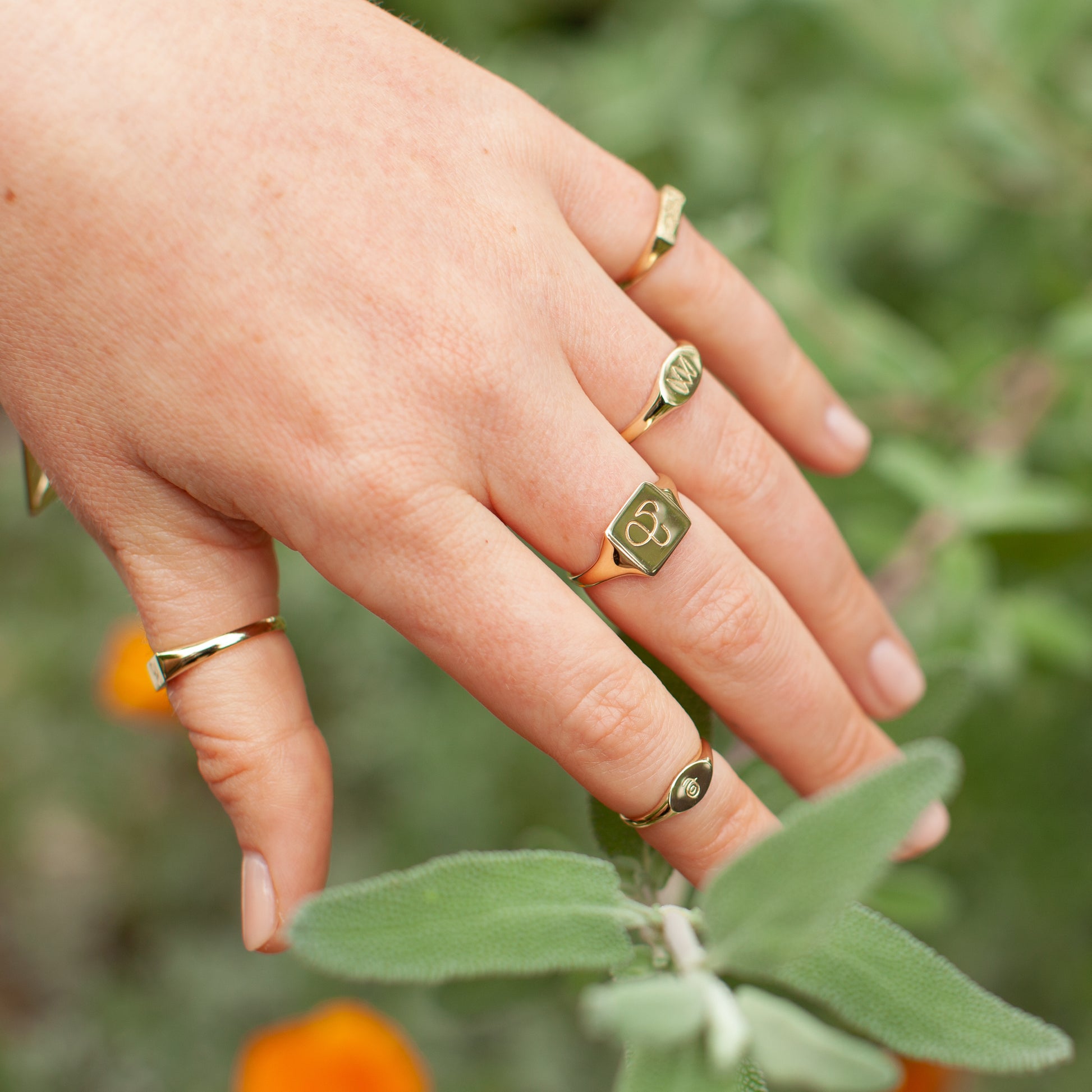 ⊹ By working with strictly solid 14k gold, we create quality pieces that last many lifetimes. We hope each Sigil Signet has a wide-reaching effect across time and family lineages. Choose to make your ring in Fairmined gold here.